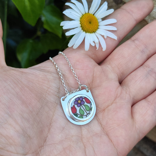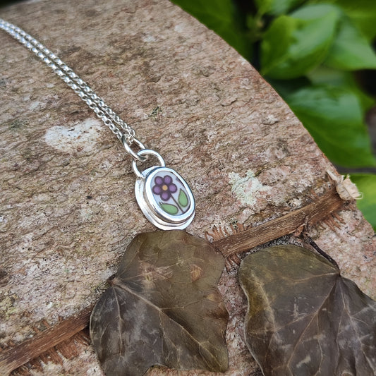 Broken Plates: Fireglow Necklace: Minimal Purple Flower