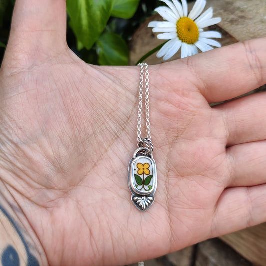Broken Plates: Fireglow Necklace: Antique Yellow Flower