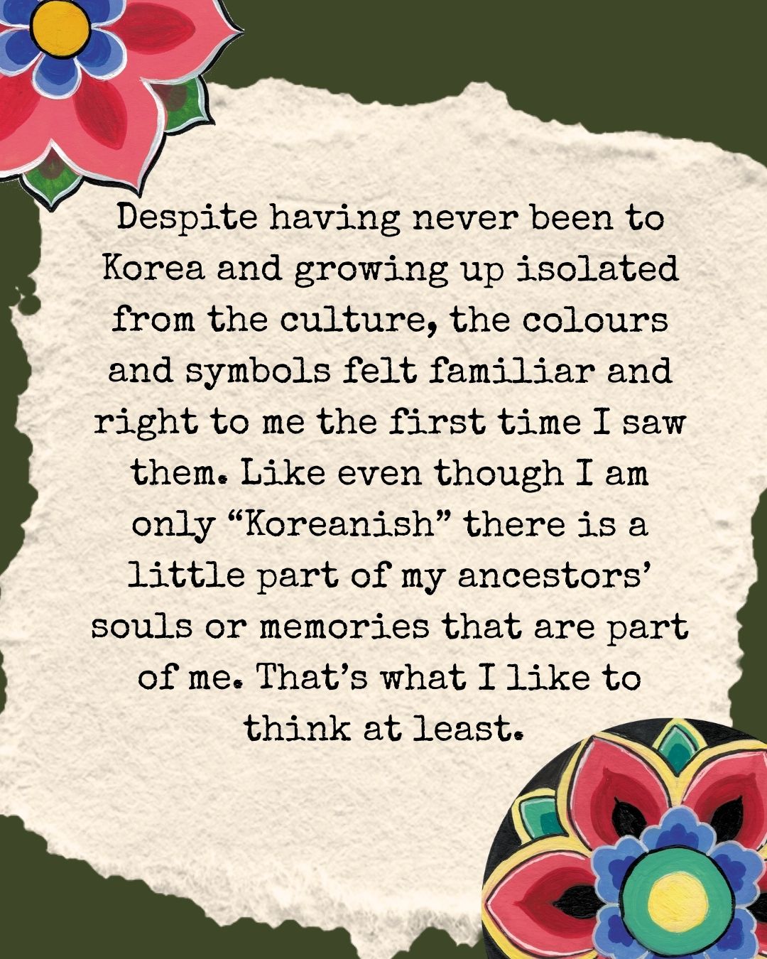 Dancheong are traditional Korean patterns painted on temples and palaces. The colours and symbols carry cultural meaning and they captivated me the moment I first saw them in books as a child. Being half-Korean and raised in the United States secluded from my mom's culture, I have often struggled with identity. This collection is a chance to explore and connect with my Korean heritage and I invite you to join on the journey discovering and appreciating Korean culture beyond mainstream trends.